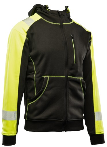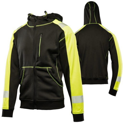 Prezentujemy Państwu Bluzę roboczą dresową z kapturem OSTRZEGAWCZĄ z pasami odblaskowymi ciepłą w kolorze czarno-żółtym model RIVAL