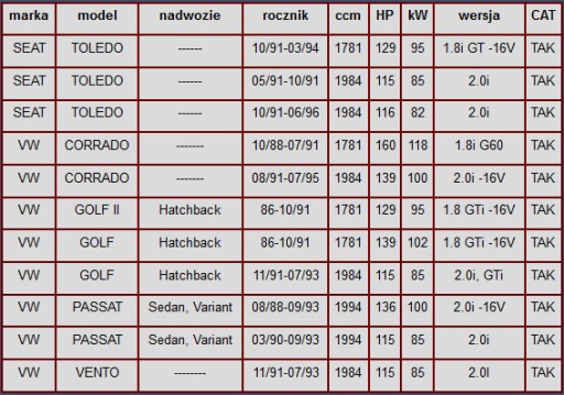 zastosowanie : SEAT TOLEDO VENTO 1.8 2.0