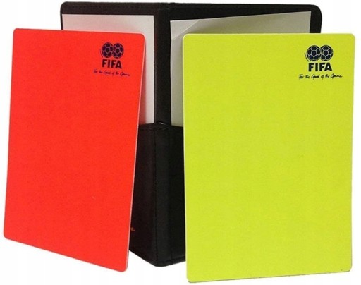 - Karty sędziowskie: 2 szt. (czerwona i żółta)