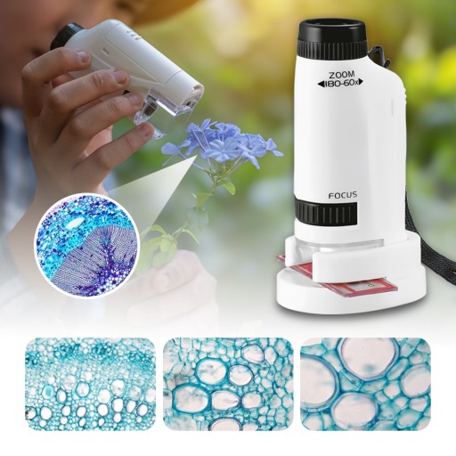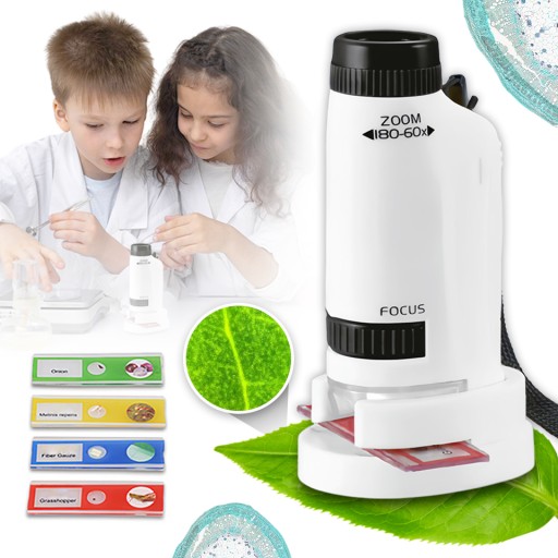 ✨MIKROSKOP KIESZONKOWY PRZENOŚNY EDUKACYJNY PREZENT DLA DZIECI 60x-180x +LED✨