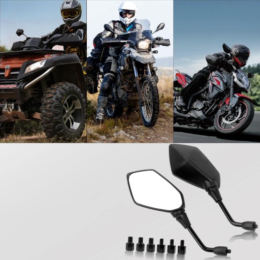 ☑️☑️【Szeroka kompatybilność】Lusterko kierownicy nadaje się do większości marek motocykli, pojazdów terenowych, rowerów ulicznych, pojazdów terenowych, rowerów i skuterów BMX itp. Można je również zainstalować na rowerze i są łatwe w instalacji.