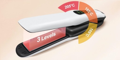 - Obsługa jednym przyciskiem: Przytrzymaj przez 3 sekundy przycisk ON/OFF, aby uruchomić prostownicę. Pojedynczymi kliknięciami wybierz 1 z 3 temperatur: 165, 185 lub 205°C. Prostownica w 30 sekund nagrzeje się do temperatury roboczej 165, w 40 sekund do 185℃ i maksimum 205℃ w zaledwie 60 sekund.