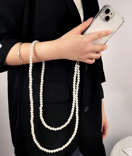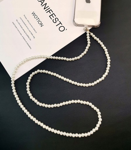 Шейный ремешок с белым жемчугом для ключей телефона, прочный длинный брелок с жемчугом