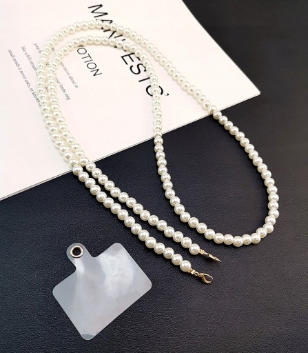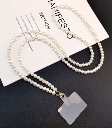 Ремешок на шею Белый жемчуг для телефона Прочный длинный брелок с жемчугом