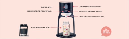 Urządzenie może także pełnić rolę podgrzewacza do butelek lub słoiczków – od 90 do 380 ml.