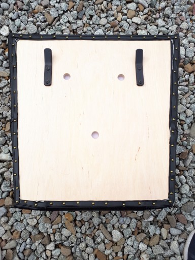 Zrobione z mocnego czarnego skaju, sklejka + pianka.