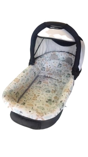 - Wkładka i poduszka dwustronnie uszyta z bawełny posiadającej wszystkie certyfikaty bezpieczne dla niemowląt.