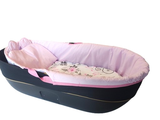 Dwustronna usztywniana wkładka DO GONDOLI Z BUDKĄ ZASUWANĄ NA ZAMEK + prześcieradło+ płaska poduszka z uszkami.
