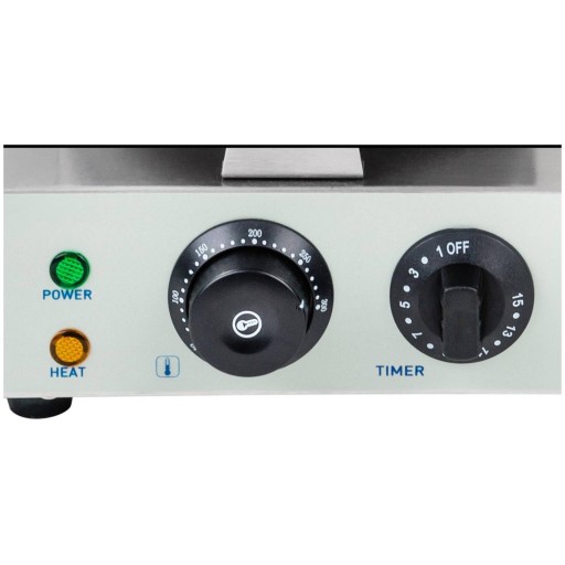 Łatwość obsługi została zagwarantowana przez dołączenie do każdej płyty termostatu, umożliwiającego wybór dowolnej temperatury pieczenia w zakresie 50-300⁰C. Czas wytwarzania gofrów regulują zaś dwa timery ustawiane do 15 minut. Pozwala to zachować optymalną kontrolę nad procesem przygotowywania deseru, natomiast sygnał dźwiękowy informujący o zakończeniu pieczenia ułatwia otrzymanie wafli wedle osobistych preferencji – miękkich lub chrupiących. Gofrownica szybko się nagrzewa, a zaświecona lampka sygnalizuje gotowość do rozpoczęcia pracy.