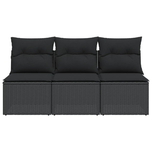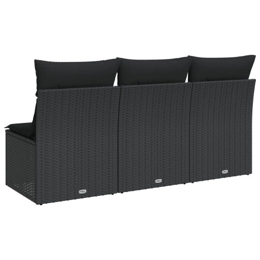 vidaXL Sofa ogrodowa z poduszkami, 3-osobowa, czarna, polirattan