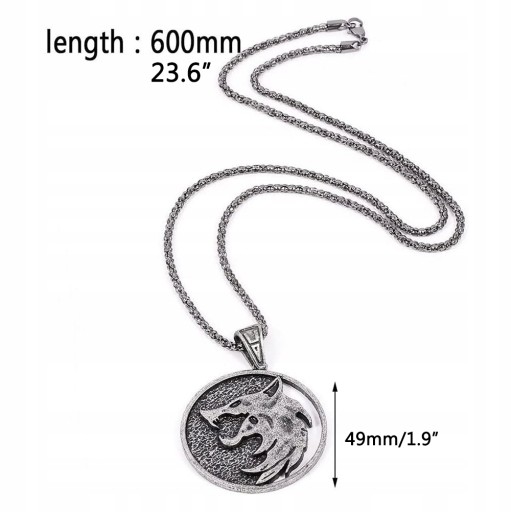 - Waga: około 37g . WIEDŹMIN NASZYJNIK WILK WITHER MEDALION 49mm