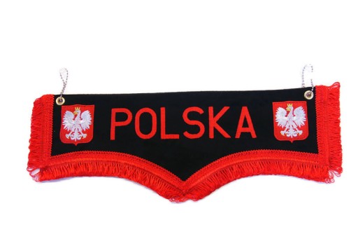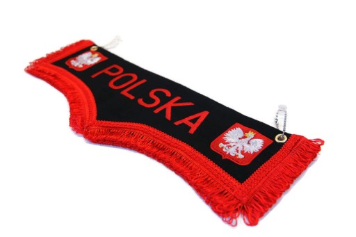 Przedmiotem sprzedaży jest haftowana zawieszka samochodowa z napisem POLSKA.