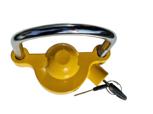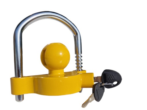 Wysokiej jakości uniwersalne zabezpieczenie zaczepu przyczepy, które zabezpiecza zaparkowaną, odpiętą przyczepę przed kradzieżą.