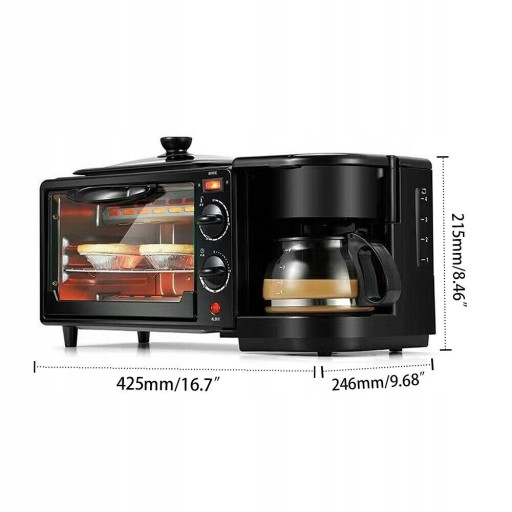 - 1. Maszyna śniadaniowa 3 w 1, przygotuj śniadanie, przygotuj kawę i piecz kiełbaski w tym samym czasie, oszczędzaj czas.