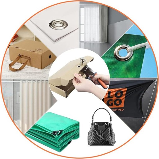 -Nadaje się do różnych materiałów, takich jak plandeki, markizy, tkaniny, płótno, banery PCV, tektura, skóra itp. (Uwaga: materiały, które są zbyt grube/zbyt miękkie, należy przebić przed montażem.)
