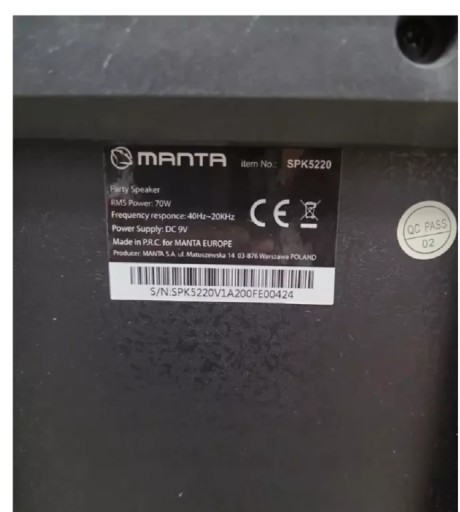 W sprzedazy GŁOŚNIK BT MANTA SPK5210