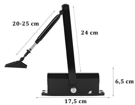 - PODWÓJNA REGULACJA – samozamykacz posiada możliwość regulacji prędkości zamykania oraz dobicia. Przekręcając śrubę regulacyjną w lewą stronę prędkość zostanie zwiększona, a w prawą stronę zmniejszona. Dodatkowo drzwi przy końcowej fazie mogą zwolnić lub przyspieszyć. Jest to szczególnie przydatne dla osób starszych, niepełnosprawnych, a także dzieci – otwieranie i zamykanie drzwi staje się łatwiejsze.