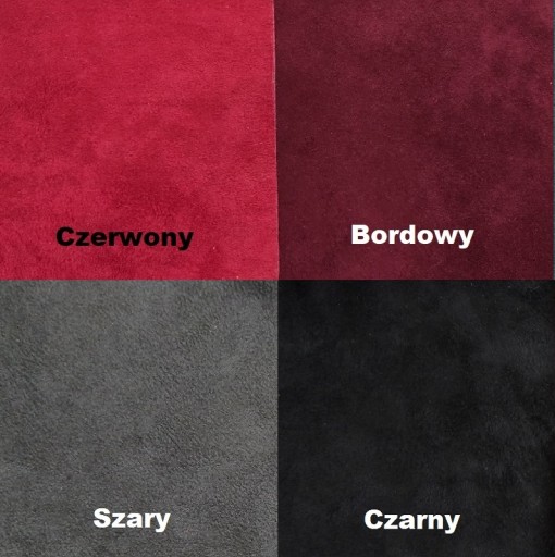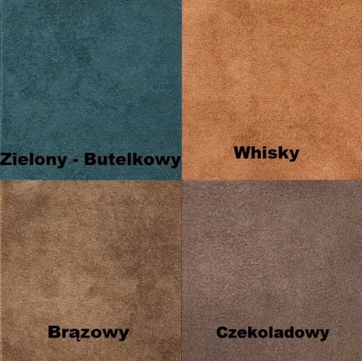 Do wyboru dostępne są następujące kolory materiału: Beżowy, Czerwony, Bordowy, Niebieski, Zielony Butelkowy, Whisky, Brązowy, Czekoladowy, Szary, Czarny.