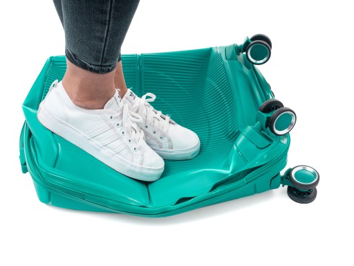 *Polipropylen to materiał, który charakteryzuje się elastycznością. Nawet po kilkusetkilogramowym nacisku skorupa wgniata się, po czym wraca do swojej prawidłowej postaci. Jest to najczęściej używany materiał w produkcji wysokiej jakości walizek.