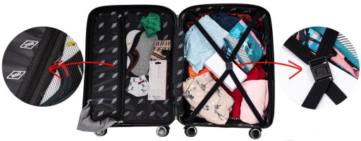 - Wewnętrzne pasy mocujące bagaż - utrzymują zawartość walizki na swoim miejscu