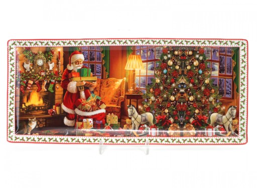 Przepiękny porcelanowy półmisek z motywem świątecznym. Idealnie sprawdzi się również jako ozdoba stołu czy komody w domu i w pracy. Wykorzystasz jako samodzielną dekorację stołu, do serwowania potraw świątecznych. Ale nie tylko! Możesz na niej stworzyć piękne dekoracje okolicznościowe z okazji Świąt Bożego Narodzenia wystarczą tylko figurki, gałązki i troszkę kreatywności. Świetnie sprawdzi się jako pomysł na prezent.