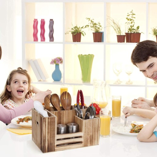 - Ten praktyczny uchwyt na sztućce wykonany jest z wysokiej jakości drewna pochodni, całkowicie bezpieczny do codziennego użytku. Ciepły kolor i klasyczne wzornictwo nadają się do kuchni, jadalni i restauracji, gastronomii, do organizacji sztućców podczas pikników, bufetów, imprez lub innych wydarzeń.