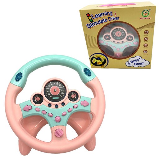 INTERAKTYWNA KIEROWNICA RÓŻOWA Z PODSTAWKĄ DŹWIĘKI SYMULATOR Z PRZYSSAWKAMI