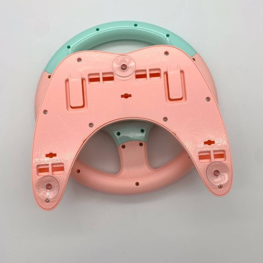 Kierownica posiada solidne przyssawki, które umożliwiają łatwe i stabilne przymocowanie do dowolnej płaskiej powierzchni. Kolor przyciąga uwagę i zachęca do zabawy, a intuicyjny układ przycisków pozwala na naukę i rozwijanie umiejętności motorycznych.