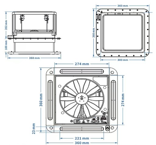 - OŚWIETLENIE LED: Obecność oświetlenia LED pozwala na korzystanie z wentylatora także w nocy lub w warunkach ograniczonej widoczności, co zwiększa komfort użytkowania podczas kempingu i podróży. Oświetlenie LED może także stanowić dodatkowe źródło światła wewnątrz pojazdu, co przyczynia się do stworzenia przyjemnej atmosfery i funkcjonalności przestrzeni.