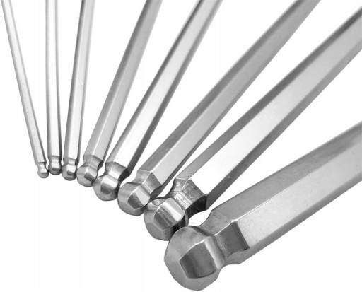 - Imbusy posiadają kuliste końcówki na długim boku, ułatwiające pracę klucza pod kątem.