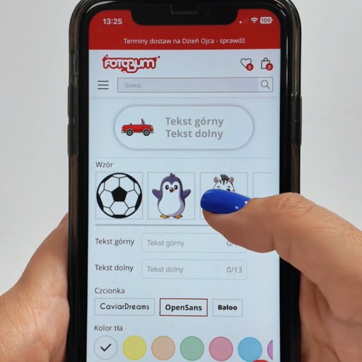 Po zakupie w prostym kreatorze uzupełnisz dowolny tekst na naklejce i wybierzesz grafikę.