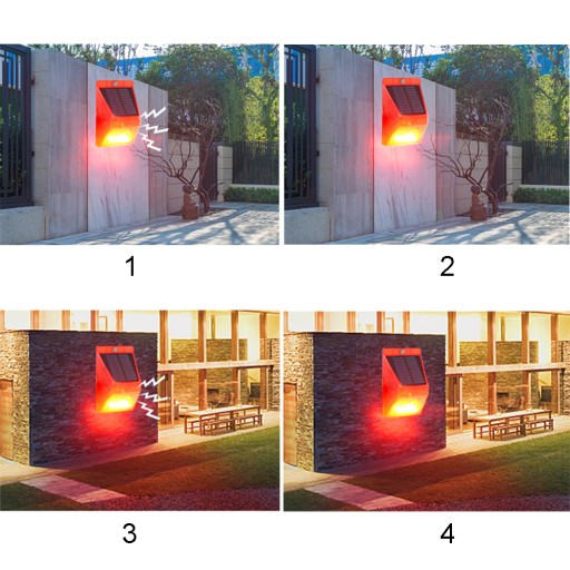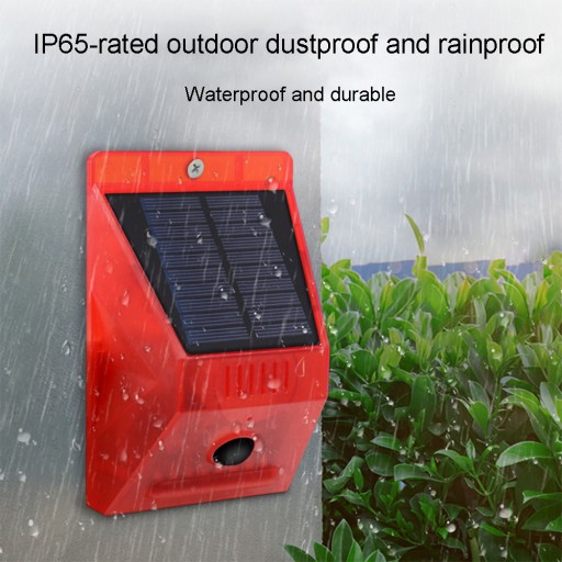 1. Czuły czujnik ruchu wykryje każdy ruch w promieniu 58 metrów i aktywuje alarm dźwiękowy, włączy się dźwięk i włączy się światło stroboskopowe. 2. Po prostu alarm stroboskopowy, który zapewnia wystarczającą ilość światła słonecznego. 3. Bezprzewodowa lampa stroboskopowa z czujnikiem ruchu jest odpowiednia dla bezpieczeństwa domów mieszkalnych, gospodarstw rolnych, willi, hoteli, targowisk, pensjonatów i innych miejsc, w których wymagany jest alarm bezpieczeństwa. 4. Alarm świetlny LED szybko reaguje na każdą niezwykłą aktywność, co może skutecznie zapobiec inwazji złodziei i dzikich zwierząt oraz chronić własność placów budowy, gospodarstw rolnych i sadów. 5. Produkt ma mocną konstrukcję, jest wodoodporny i antykorozyjny, dzięki czemu można go dostosować do różnych trudnych warunków zewnętrznych i zachować trwałość.