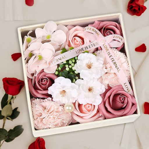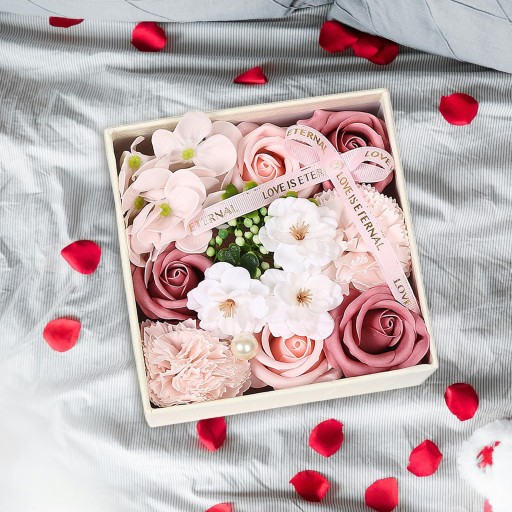 [Opis]: Piękne opakowanie kwiatu mydła zawiera pudełko upominkowe, dobrze zapakowane i uporządkowane, gotowe do wręczenia jako prezent na Walentynki dla dziewczyny.