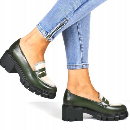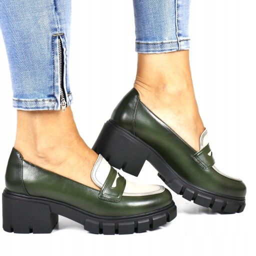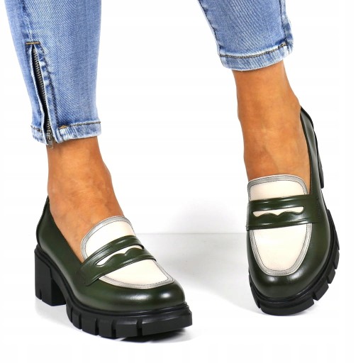 PÓŁBUTY NA PLATFORMIE MOKASYNY BUTELKOWA ZIELEŃ WYGODNE I LEKKIE