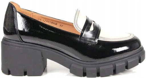 PÓŁBUTY DAMSKIE MOKASYNY PLATFORMA GRUBA PODESZWA LORDSY CZARNE POTOCKI