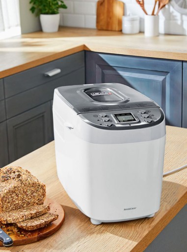 - ze specjalnymi programami do np. pieczenia bezglutenowego, robienia ciasta na makaron i pizzę, dżemu, jogurtu i HomeMade (możliwość zaprogramowania nawet 8 własnych przepisów)
