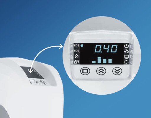 System automatycznie dostosowuje się do maksymalnego odzysku czystej wody oraz optymalizuje stężenie wapnia i magnezu, w zależności od początkowej twardości wody.