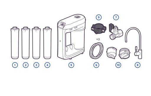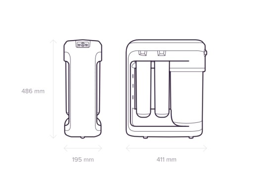 - wbudowana pompa ciśnieniowa zapewnia szybki i równomierny przepływ czystej wody z kranu wody pitnej