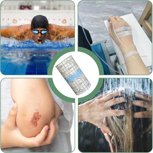 - Antyalergiczny bandaż. Wodoodporny klej prysznicowy składa się z podkładu PET, folii PU, kleju wrażliwego na nacisk i papieru do ściągania. Unikalna konstrukcja tego trójwarstwowego wodoodpornego przezroczystego bandaża jest trwała, oddychająca, przyjazna dla skóry i wygodna.