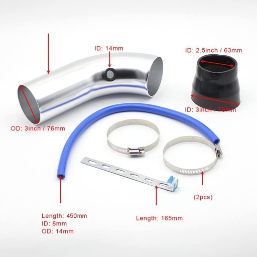 ✅Aluminiowa rura w połączeniu z filtrem powietrza w kształcie lejka umożliwia przepływ zimnego powietrza, co prowadzi do minimalnych turbulencji wlotowych, zwiększania prędkości powietrza, a z kolei do tworzenia czystej mocy i poprawy przebiegu paliwa/gazu.