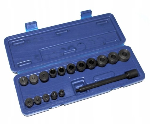 Zestaw przystosowany do szybkiego i dokładnego de/montażu osiowego łożysk, uszczelniaczy, tulei np. alternatorów, zwrotnic, korbowodów oraz rozruszników itp. Pierścienie centrujące oraz wybijające zostały wykonane w sposób precyzyjny ze stali chemicznie oksydowanej, co daje gwarancję dokonania wymian łożysk osiowych bez żadnych uszkodzeń. Przyrząd używany jest do samochodów osobowych i dostawczych.