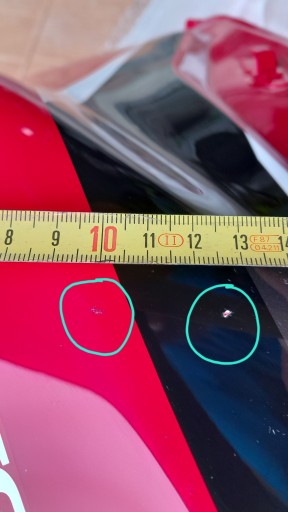 Stan bardzo dobry widoczny na zdjęciach, praktycznie idealny, nie naprawiany i nie malowany, bez żadnych wgnieceń, jedynie z lewej strony dwa bardzo małe odpryski (zaznaczone) i bardzo płytkie ryski w trzech miejscach (zaznaczone).