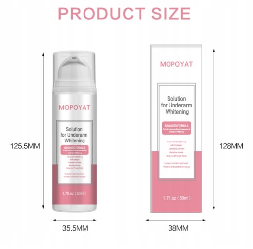 Krem pod pachami jest testowany dermatologicznie do pracy nawet skóra wrażliwa. Stopniowo odnawia komórki skóry, aby ciemne plamy zniknęły. Pozostawiając skórę bielszą promienną poświatą.