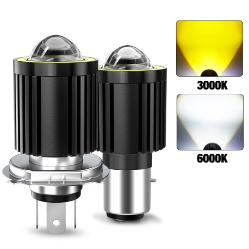 - Retrofit LED (1 szt.) soczewka Angel Eye zamiennik tradycyjnej żarówki motocyklowej dwuwłóknowej H4 - świateł mijania/krótkich - barwa żółta RETRO 3000K i drogowych/długich - barwa biała Xenon White 6000K