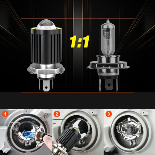 Kompaktowe rozmiary zestawu, pasuje do większości reflektorów. Do podłączenia w miejsce oryginalnych żarówek.