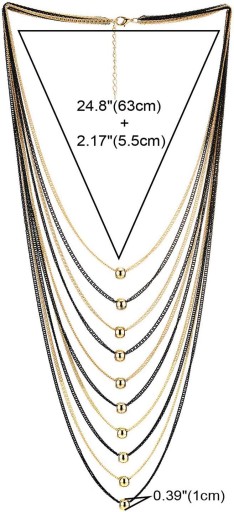 ① Czarny złoty naszyjnik wodospad wielowarstwowy długi łańcuszek z kulką charm zawieszka suknia wieczorowa