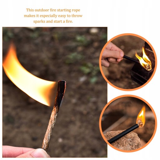Te zewnętrzne narzędzia do rozpalania ognia są wykonane z najwyższej jakości materiału, który może być używany przez długi czas. Produkt ma prostą konstrukcję, ale lina do rozpalania ognia jest bardzo przydatna i praktyczna. Bardzo łatwa i wygodna w użyciu lina do rozpalania ognia to bardzo przydatna linka do rozpalania ognia na kempingu na zewnątrz. Niezbędne materiały kempingowe, ułatwiają rozpalanie ognia, znacznie oszczędzają czas.