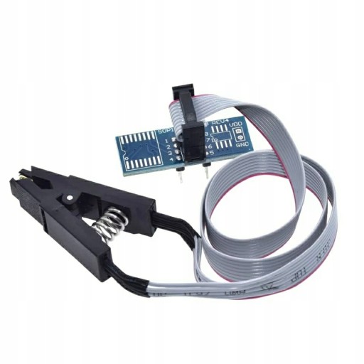 Klips umożliwiający programowanie i odczyt układów SO8 SOP8 SOIC8 DIP8. Znacznie przyspiesza pracę oraz zapobiega uszkodzeniu układów podczas wylutowywania. Dzięki niemu mamy możliwośc programowania układów 93/25/24 bez potrzeby wylutowywania z płyty. Zgodny z programatorami typu EXP2010, EZP2013. Mocna sprężyna gwarantuje pewny uścisk.