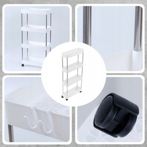 PÓŁKA ŁAZIENKOWA KUCHENNA SZAFKA NA KÓŁKACH REGAŁ 4 POZIOMOWY Z HACZYKAMI