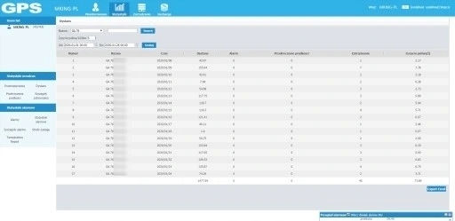 Możliwość wygenerowania raportów przebiegów/alarmów/przekroczeń prędkości